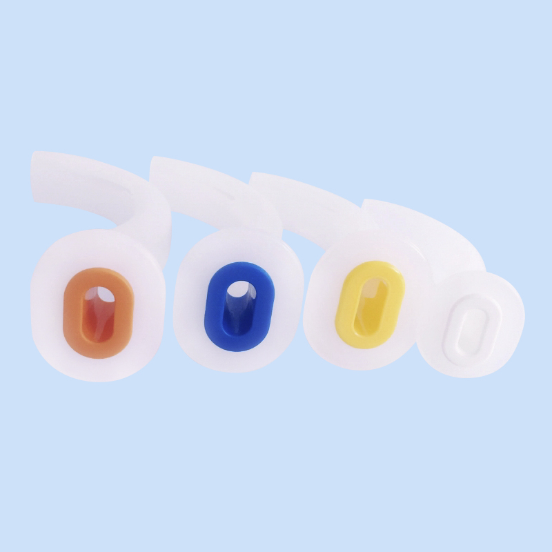 Tersedia dalam berbagai ukuran dan cocok untuk bayi, anak-anak, dan orang dewasa. Memilih ukuran yang tepat sangatlah penting - biasanya ditentukan oleh jarak dari gigi seri pasien ke daun telinga atau sudut mandibula.