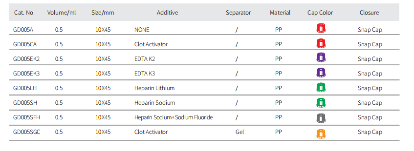 Tabung pengumpulan darah mikro adalah tabung pengumpulan darah kecil yang dirancang untuk sampel darah volume kecil. Biasanya digunakan untuk pengumpulan darah mikro, biasanya 0,5ml ~ 2ml, dan cocok untuk skenario di mana jumlah darah yang dikumpulkan perlu dikurangi, seperti skrining bayi baru lahir atau pemantauan frekuensi tinggi seperti gula darah dan rutin darah.
