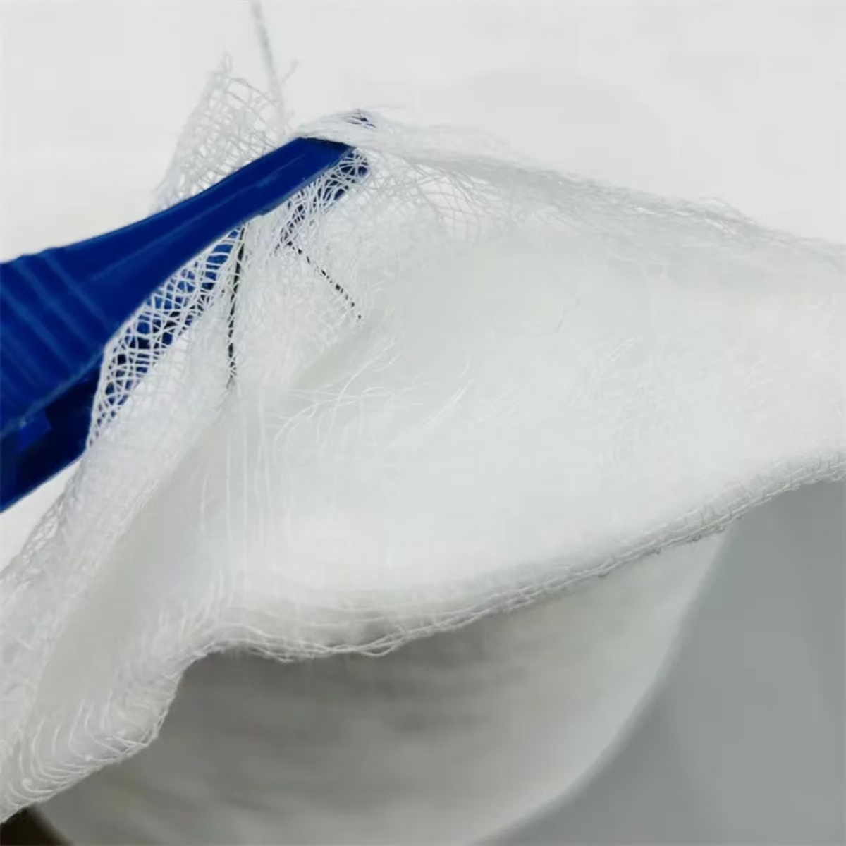 Dengan kain kasa di sekitar kapas.